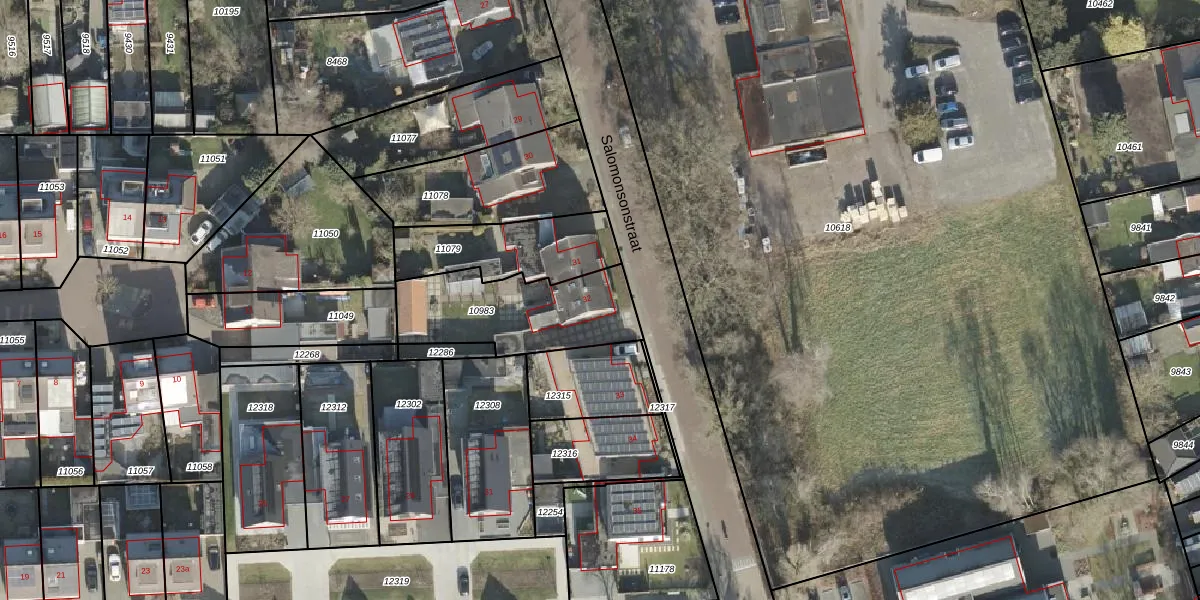 Het perceel waarop Salomonsonstraat 32 staat heeft een oppervlakte van 467 m². Dit is een groot perceel. De perceeloppervlakte wordt geregistreerd door het Kadaster. Gedetailleerde informatie over de maten van dit perceel kunt u vinden in het rapport Kadastrale kaart met maatvoering van Salomonsonstraat 32.