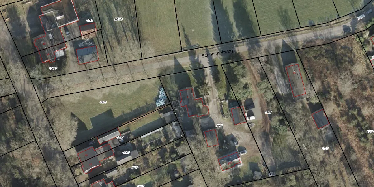 Het perceel waarop Schanshekweg 2 staat heeft een oppervlakte van 2210 m². Dit is een zeer groot perceel. De perceeloppervlakte wordt geregistreerd door het Kadaster. Gedetailleerde informatie over de maten van dit perceel kunt u vinden in het rapport Kadastrale kaart met maatvoering van Schanshekweg 2.
