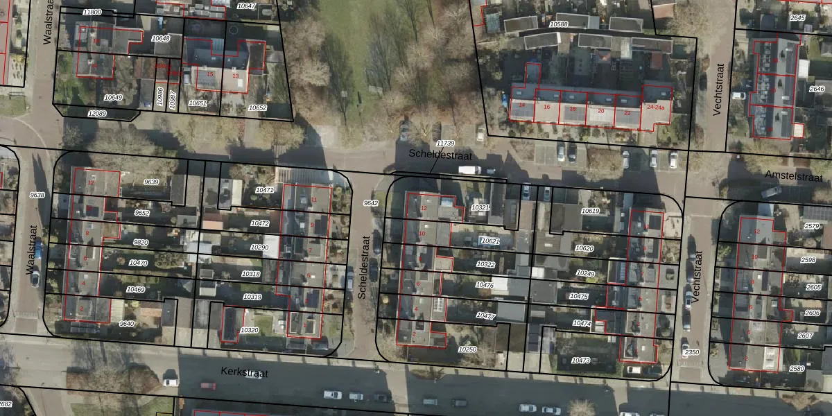Het perceel waarop Scheldestraat 12 staat heeft een oppervlakte van 332 m². Dit is een groot perceel. De perceeloppervlakte wordt geregistreerd door het Kadaster. Gedetailleerde informatie over de maten van dit perceel kunt u vinden in het rapport Kadastrale kaart met maatvoering van Scheldestraat 12.