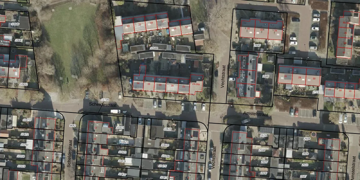 Het perceel waarop Scheldestraat 22 staat heeft een oppervlakte van 2518 m². Dit is een zeer groot perceel. De perceeloppervlakte wordt geregistreerd door het Kadaster. Gedetailleerde informatie over de maten van dit perceel kunt u vinden in het rapport Kadastrale kaart met maatvoering van Scheldestraat 22.