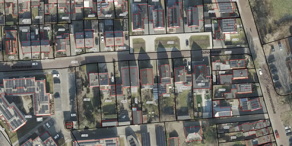 Het perceel waarop Schoolstraat 12 staat heeft een oppervlakte van 513 m². Dit is een groot perceel. De perceeloppervlakte wordt geregistreerd door het Kadaster. Gedetailleerde informatie over de maten van dit perceel kunt u vinden in het rapport Kadastrale kaart met maatvoering van Schoolstraat 12.