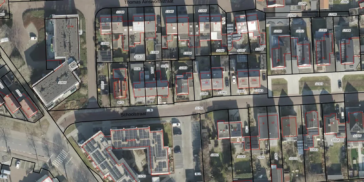 Het perceel waarop Schoolstraat 17 staat heeft een oppervlakte van 262 m². Dit is een middelgroot perceel. De perceeloppervlakte wordt geregistreerd door het Kadaster. Gedetailleerde informatie over de maten van dit perceel kunt u vinden in het rapport Kadastrale kaart met maatvoering van Schoolstraat 17.
