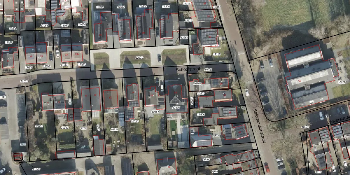 Het perceel waarop Schoolstraat 18 staat heeft een oppervlakte van 625 m². Dit is een groot perceel. De perceeloppervlakte wordt geregistreerd door het Kadaster. Gedetailleerde informatie over de maten van dit perceel kunt u vinden in het rapport Kadastrale kaart met maatvoering van Schoolstraat 18.