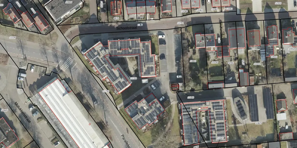 Het perceel waarop Schoolstraat 2-a-11 staat heeft een oppervlakte van 4355 m². Dit is een zeer groot perceel. De perceeloppervlakte wordt geregistreerd door het Kadaster. Gedetailleerde informatie over de maten van dit perceel kunt u vinden in het rapport Kadastrale kaart met maatvoering van Schoolstraat 2-a-11.