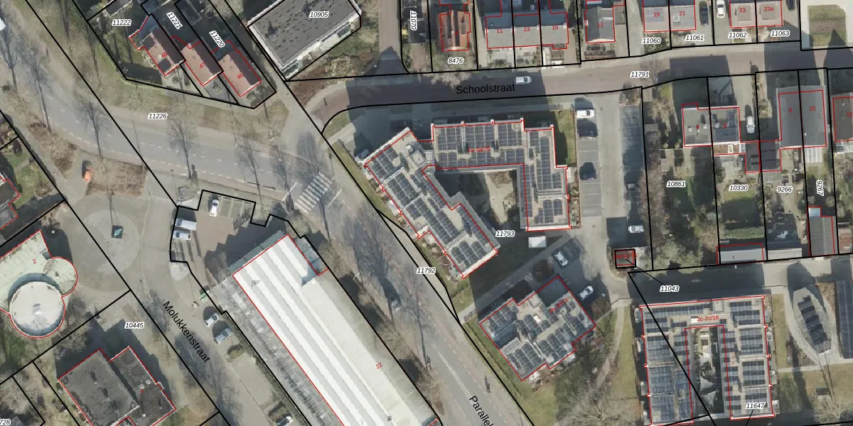 Het perceel waarop Schoolstraat 2-a-19 staat heeft een oppervlakte van 4355 m². Dit is een zeer groot perceel. De perceeloppervlakte wordt geregistreerd door het Kadaster. Gedetailleerde informatie over de maten van dit perceel kunt u vinden in het rapport Kadastrale kaart met maatvoering van Schoolstraat 2-a-19.