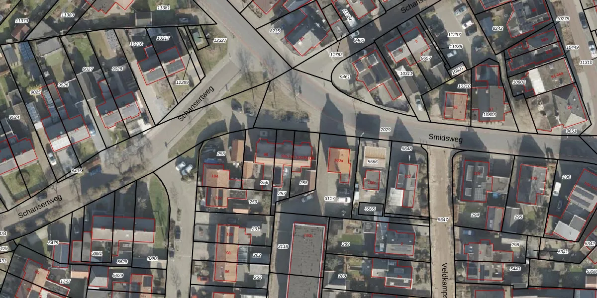 Smidsweg 100 is gelegen op kadastraal perceel HLD01L258. Deze kadastrale aanduiding is uniek en wordt gebruikt door het Kadaster om eigendomsrechten en andere zakelijke rechten vast te leggen. Het perceel maakt onderdeel uit van de kadastrale gemeente Hellendoorn.