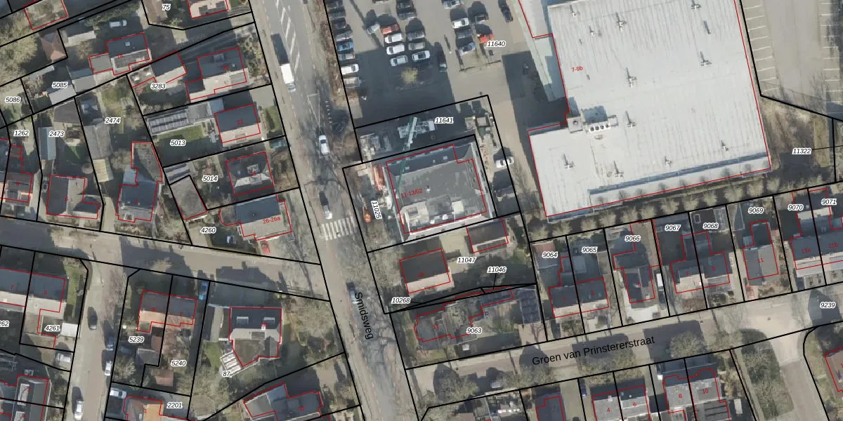 Het perceel waarop Smidsweg 13-02 staat heeft een oppervlakte van 662 m². Dit is een groot perceel. De perceeloppervlakte wordt geregistreerd door het Kadaster. Gedetailleerde informatie over de maten van dit perceel kunt u vinden in het rapport Kadastrale kaart met maatvoering van Smidsweg 13-02.