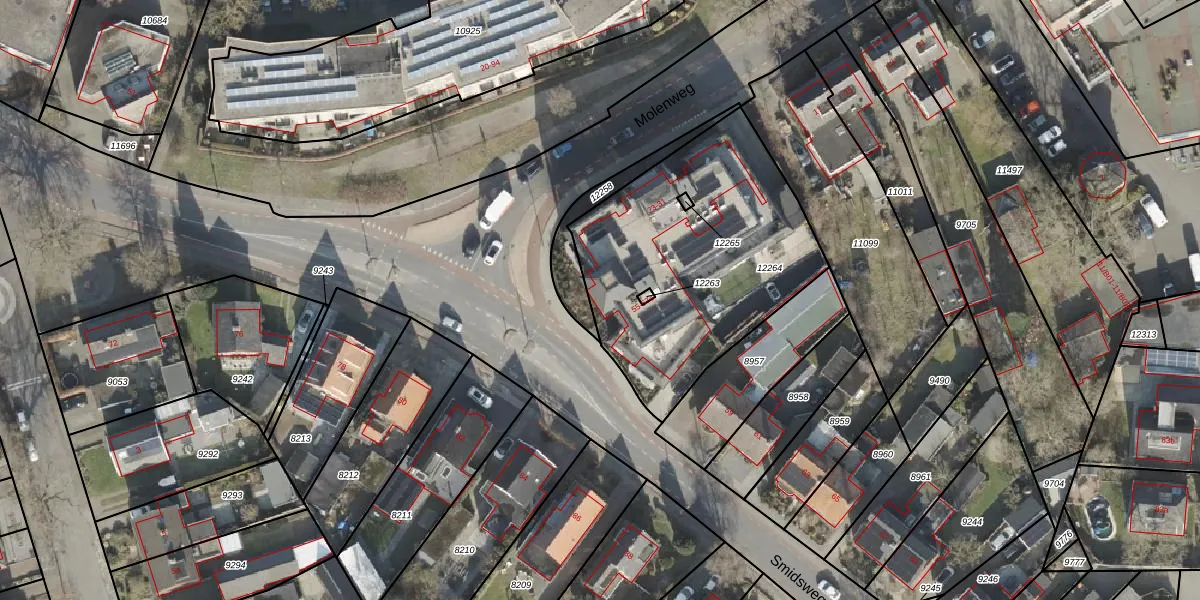 Het perceel waarop Smidsweg 55-a staat heeft een oppervlakte van 1246 m². Dit is een zeer groot perceel. De perceeloppervlakte wordt geregistreerd door het Kadaster. Gedetailleerde informatie over de maten van dit perceel kunt u vinden in het rapport Kadastrale kaart met maatvoering van Smidsweg 55-a.