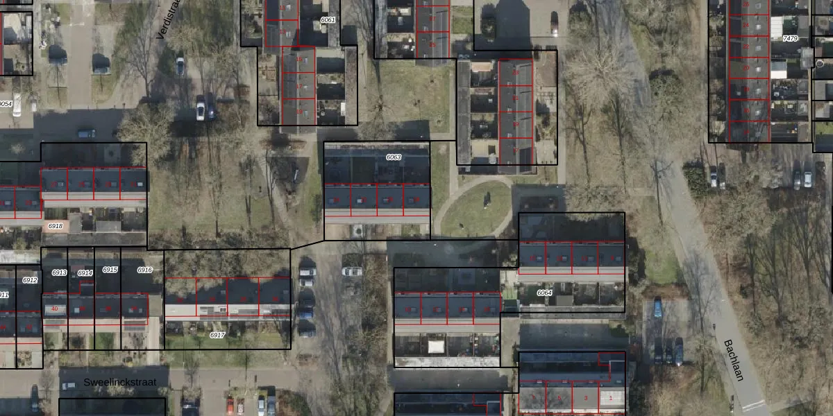 Het perceel waarop Sweelinckstraat 18 staat heeft een oppervlakte van 614 m². Dit is een groot perceel. De perceeloppervlakte wordt geregistreerd door het Kadaster. Gedetailleerde informatie over de maten van dit perceel kunt u vinden in het rapport Kadastrale kaart met maatvoering van Sweelinckstraat 18.