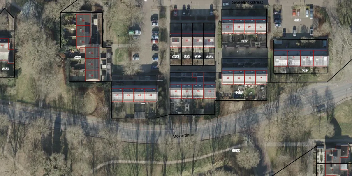 Het perceel waarop Sweelinckstraat 39 staat heeft een oppervlakte van 1315 m². Dit is een zeer groot perceel. De perceeloppervlakte wordt geregistreerd door het Kadaster. Gedetailleerde informatie over de maten van dit perceel kunt u vinden in het rapport Kadastrale kaart met maatvoering van Sweelinckstraat 39.