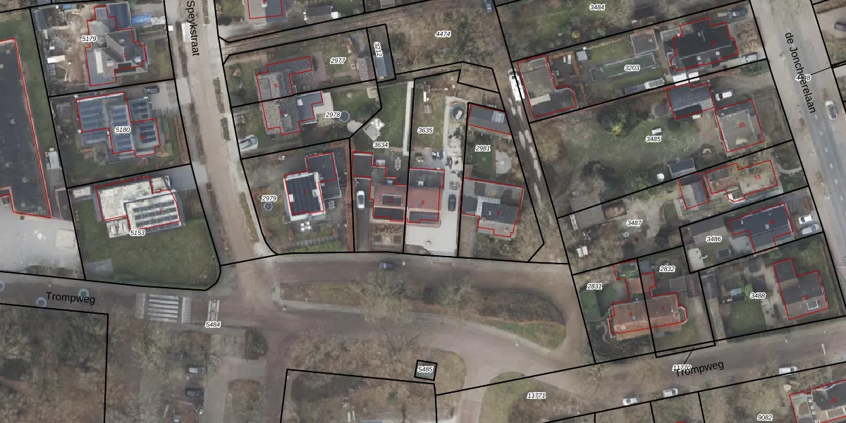 Gebruik de zoekbalk of klik op een perceel voor informatie over de adressen binnen dit perceel.