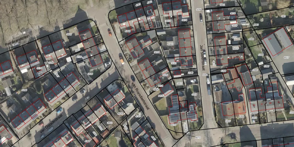 Het perceel waarop van Ruysdaelstraat 7 staat heeft een oppervlakte van 728 m². Dit is een groot perceel. De perceeloppervlakte wordt geregistreerd door het Kadaster. Gedetailleerde informatie over de maten van dit perceel kunt u vinden in het rapport Kadastrale kaart met maatvoering van van Ruysdaelstraat 7.