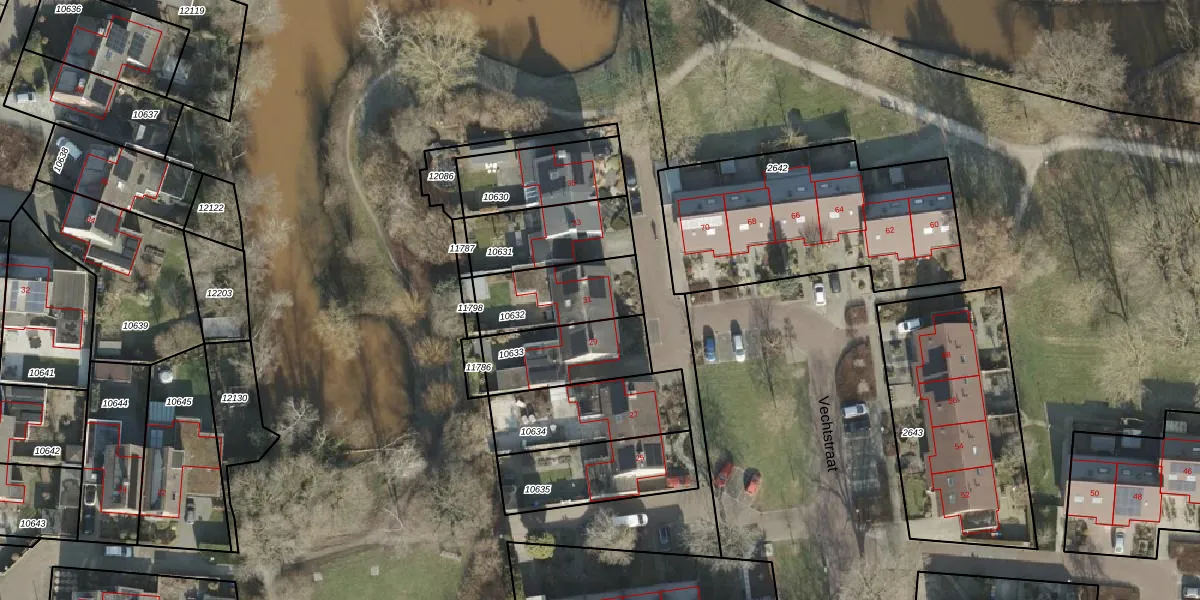 Gebruik de zoekbalk of klik op een perceel voor informatie over de adressen binnen dit perceel.