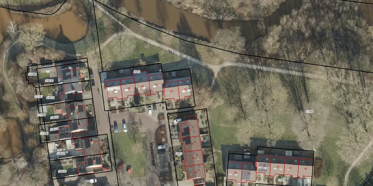 Het perceel waarop Vechtstraat 60 staat heeft een oppervlakte van 1024 m². Dit is een zeer groot perceel. De perceeloppervlakte wordt geregistreerd door het Kadaster. Gedetailleerde informatie over de maten van dit perceel kunt u vinden in het rapport Kadastrale kaart met maatvoering van Vechtstraat 60.