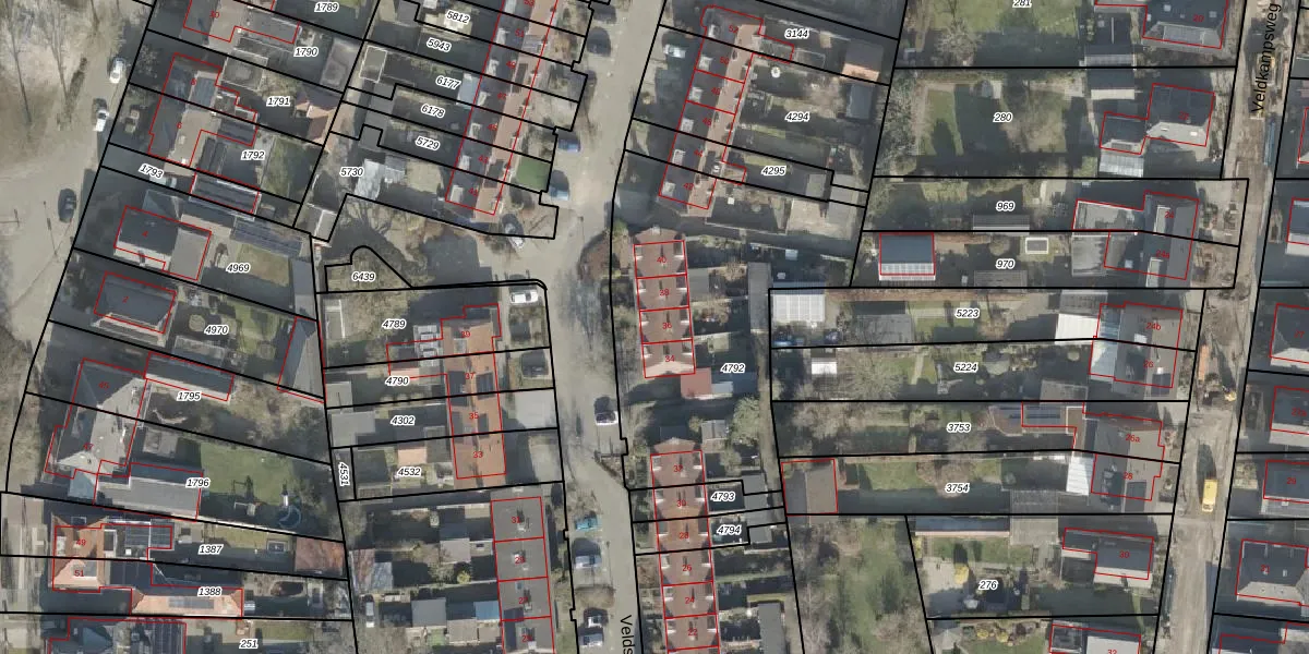 Het perceel waarop Veldsweg 36 staat heeft een oppervlakte van 1341 m². Dit is een zeer groot perceel. De perceeloppervlakte wordt geregistreerd door het Kadaster. Gedetailleerde informatie over de maten van dit perceel kunt u vinden in het rapport Kadastrale kaart met maatvoering van Veldsweg 36.