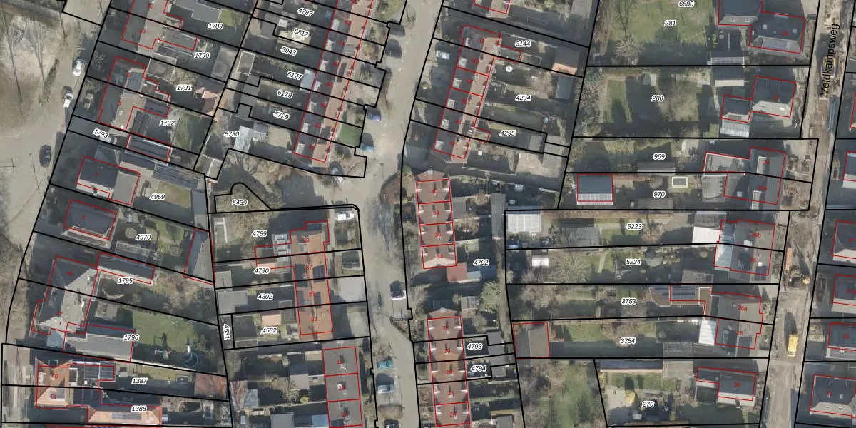 Het perceel waarop Veldsweg 38 staat heeft een oppervlakte van 1341 m². Dit is een zeer groot perceel. De perceeloppervlakte wordt geregistreerd door het Kadaster. Gedetailleerde informatie over de maten van dit perceel kunt u vinden in het rapport Kadastrale kaart met maatvoering van Veldsweg 38.
