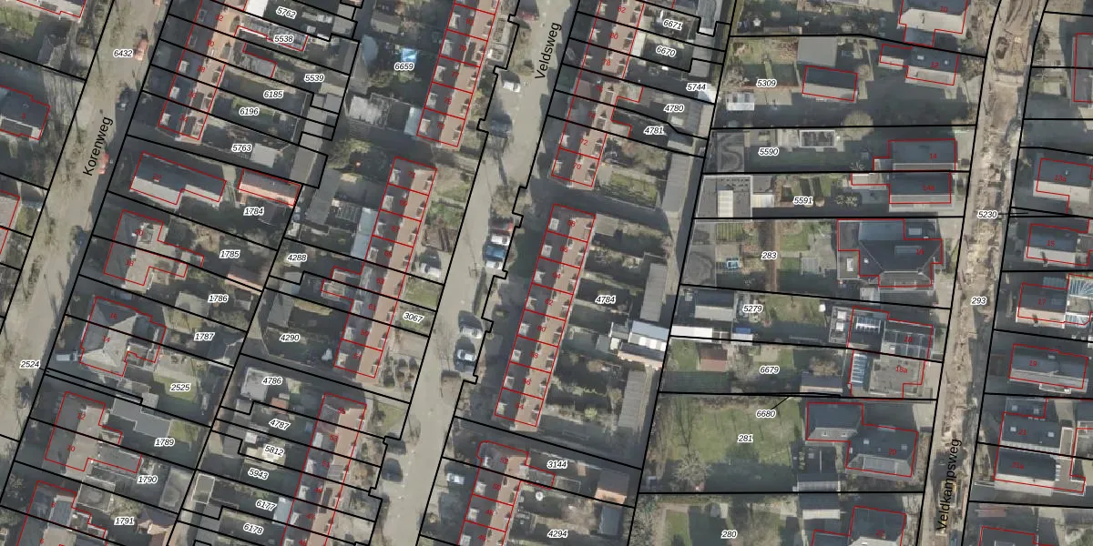 Het perceel waarop Veldsweg 64 staat heeft een oppervlakte van 1893 m². Dit is een zeer groot perceel. De perceeloppervlakte wordt geregistreerd door het Kadaster. Gedetailleerde informatie over de maten van dit perceel kunt u vinden in het rapport Kadastrale kaart met maatvoering van Veldsweg 64.