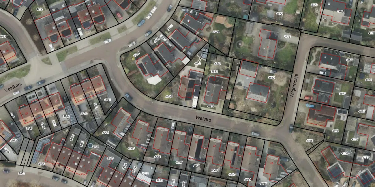 Het perceel waarop Walstro 1 staat heeft een oppervlakte van 430 m². Dit is een groot perceel. De perceeloppervlakte wordt geregistreerd door het Kadaster. Gedetailleerde informatie over de maten van dit perceel kunt u vinden in het rapport Kadastrale kaart met maatvoering van Walstro 1.