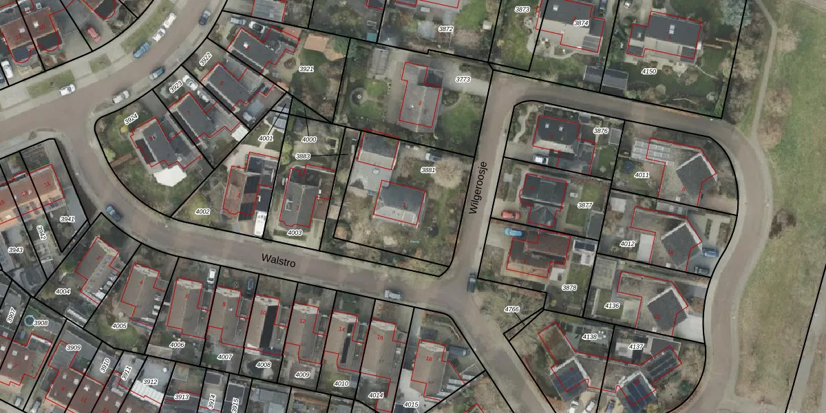 Het perceel waarop Wilgeroosje 1 staat heeft een oppervlakte van 770 m². Dit is een groot perceel. De perceeloppervlakte wordt geregistreerd door het Kadaster. Gedetailleerde informatie over de maten van dit perceel kunt u vinden in het rapport Kadastrale kaart met maatvoering van Wilgeroosje 1.