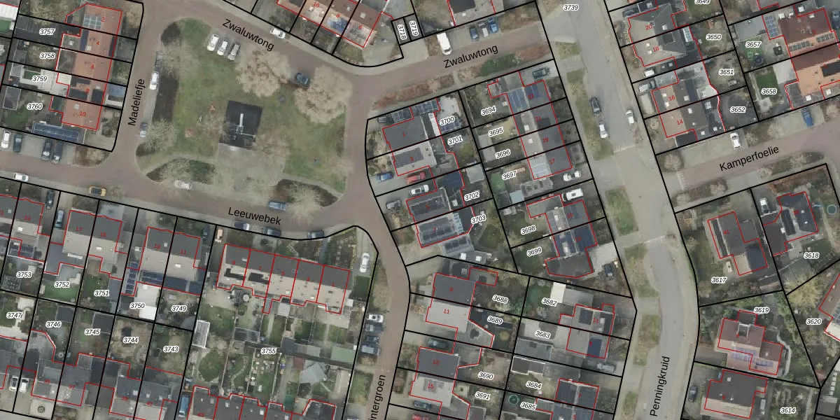 Gebruik de zoekbalk of klik op een perceel voor informatie over de adressen binnen dit perceel.