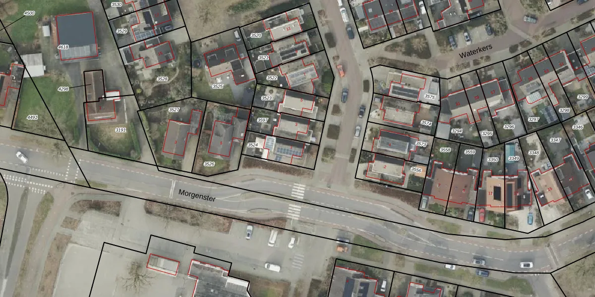 Gebruik de zoekbalk of klik op een perceel voor informatie over de adressen binnen dit perceel.