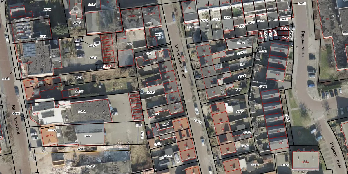 Het perceel waarop Zonnebloemstraat 71 staat heeft een oppervlakte van 576 m². Dit is een groot perceel. De perceeloppervlakte wordt geregistreerd door het Kadaster. Gedetailleerde informatie over de maten van dit perceel kunt u vinden in het rapport Kadastrale kaart met maatvoering van Zonnebloemstraat 71.