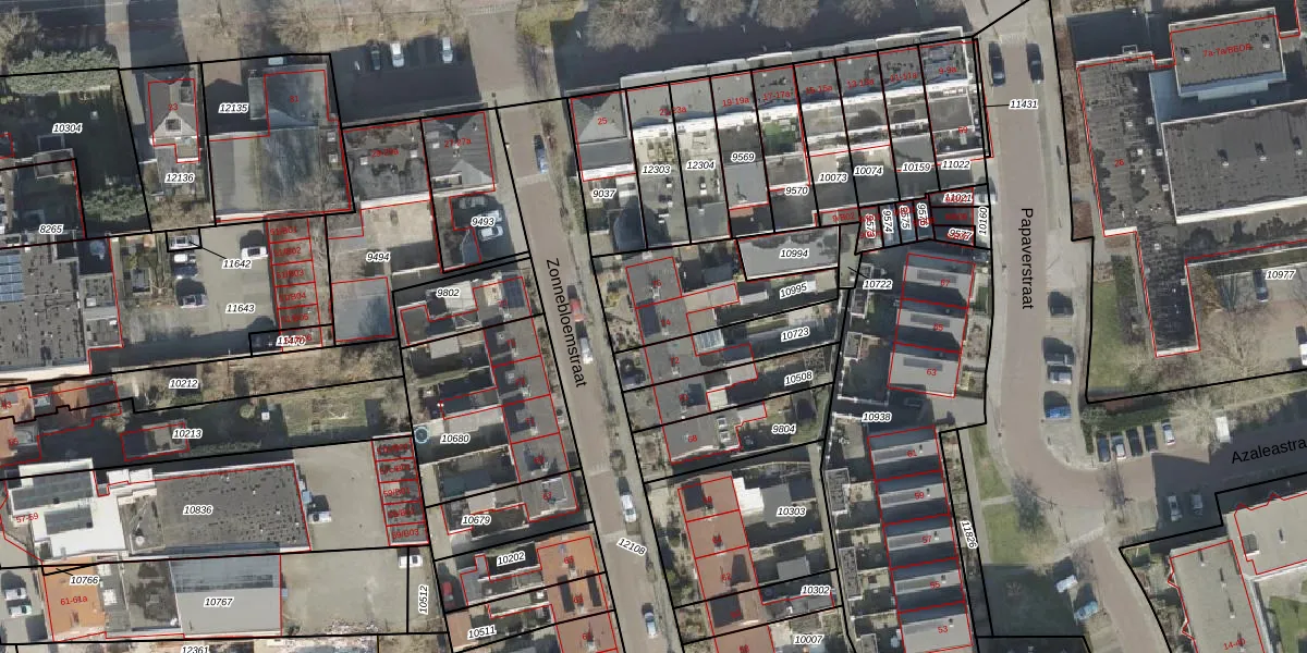 Het perceel waarop Zonnebloemstraat 74 staat heeft een oppervlakte van 383 m². Dit is een groot perceel. De perceeloppervlakte wordt geregistreerd door het Kadaster. Gedetailleerde informatie over de maten van dit perceel kunt u vinden in het rapport Kadastrale kaart met maatvoering van Zonnebloemstraat 74.
