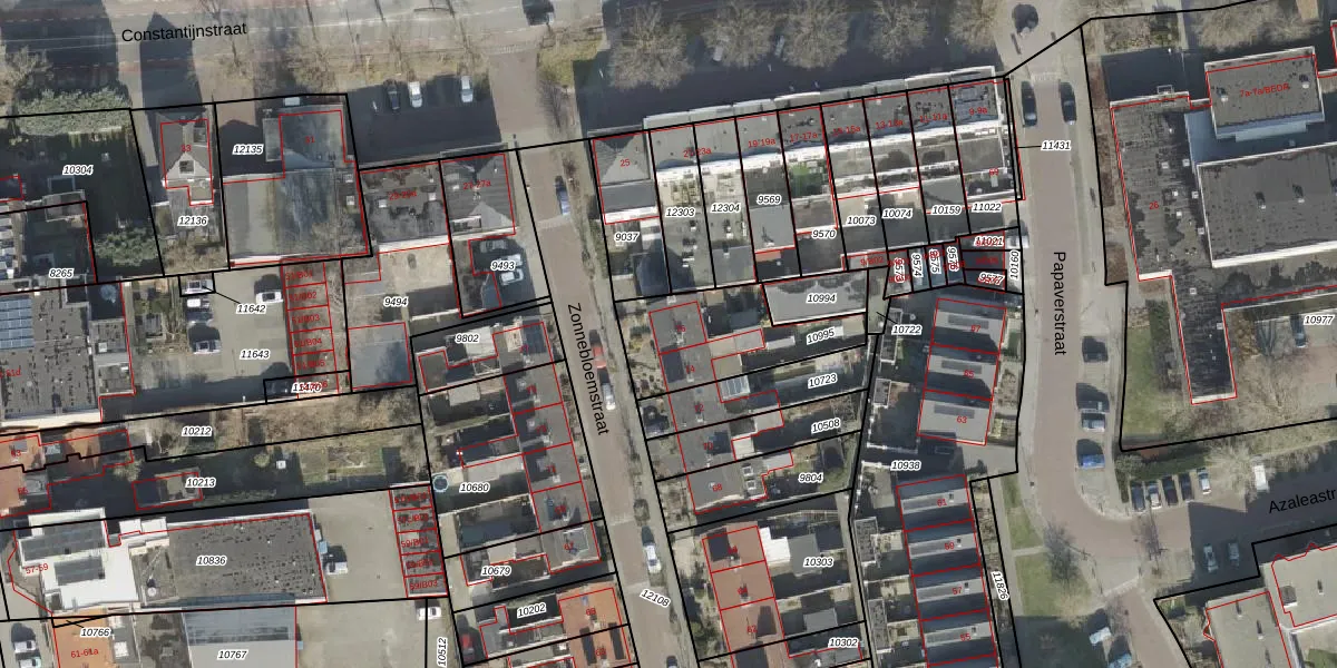 Het perceel waarop Zonnebloemstraat 76 staat heeft een oppervlakte van 383 m². Dit is een groot perceel. De perceeloppervlakte wordt geregistreerd door het Kadaster. Gedetailleerde informatie over de maten van dit perceel kunt u vinden in het rapport Kadastrale kaart met maatvoering van Zonnebloemstraat 76.