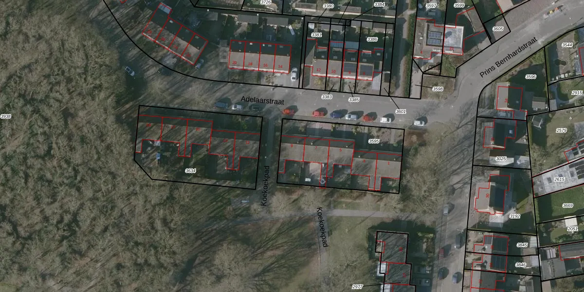 Het perceel waarop Adelaarstraat 9 staat heeft een oppervlakte van 924 m². Dit is een groot perceel. De perceeloppervlakte wordt geregistreerd door het Kadaster. Gedetailleerde informatie over de maten van dit perceel kunt u vinden in het rapport Kadastrale kaart met maatvoering van Adelaarstraat 9.