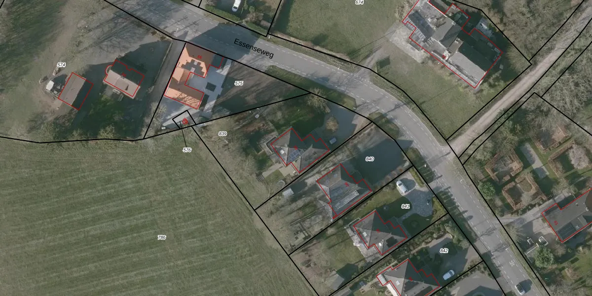 Het perceel waarop Essenseweg 88 staat heeft een oppervlakte van 1202 m². Dit is een zeer groot perceel. De perceeloppervlakte wordt geregistreerd door het Kadaster. Gedetailleerde informatie over de maten van dit perceel kunt u vinden in het rapport Kadastrale kaart met maatvoering van Essenseweg 88.