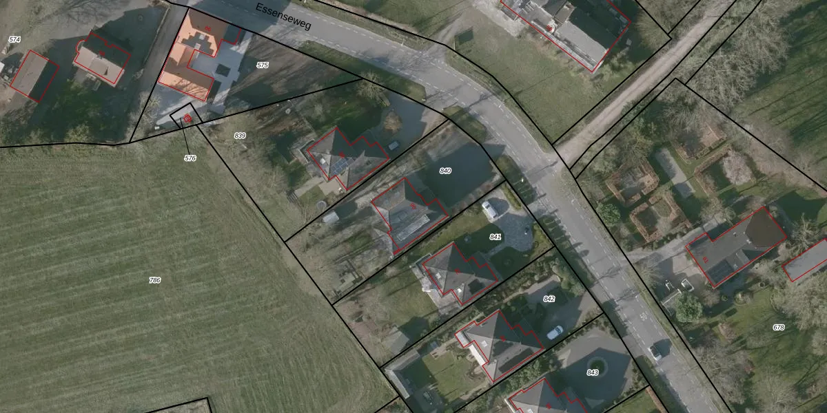 Essenseweg 90 is gelegen op kadastraal perceel RSD00R840. Deze kadastrale aanduiding is uniek en wordt gebruikt door het Kadaster om eigendomsrechten en andere zakelijke rechten vast te leggen. Het perceel maakt onderdeel uit van de kadastrale gemeente Roosendaal en Nispen.
