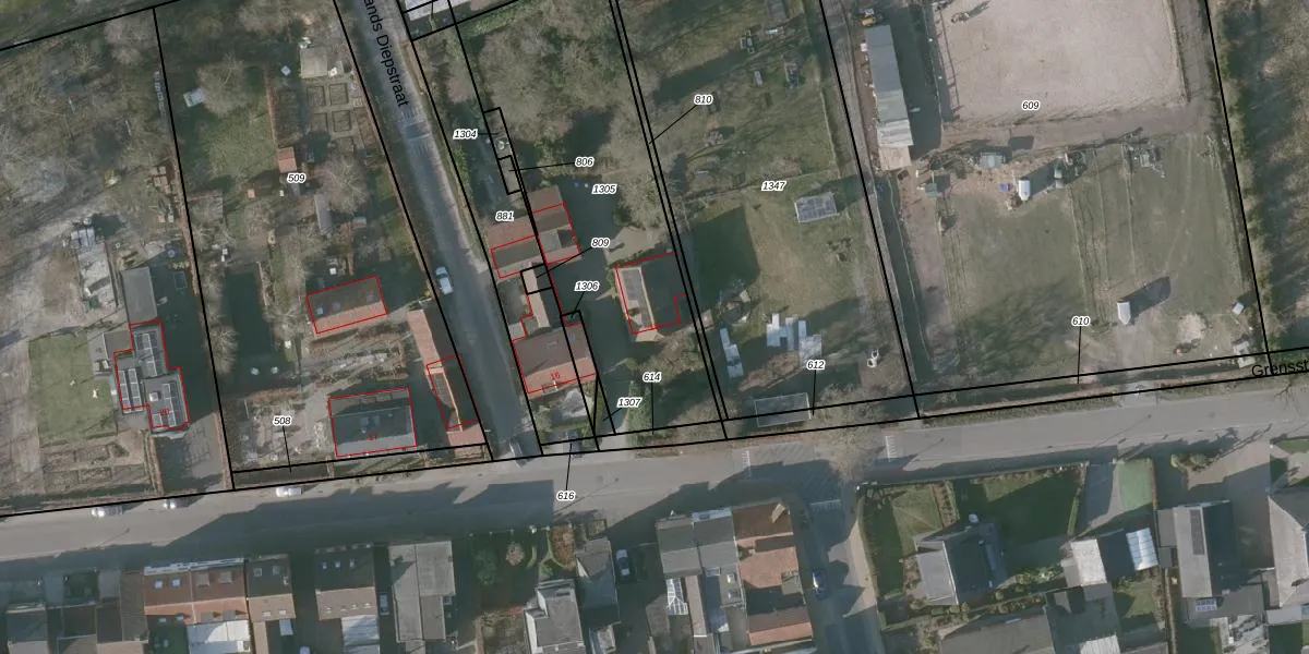 Het perceel waarop Grensstraat 15 staat heeft een oppervlakte van 1348 m². Dit is een zeer groot perceel. De perceeloppervlakte wordt geregistreerd door het Kadaster. Gedetailleerde informatie over de maten van dit perceel kunt u vinden in het rapport Kadastrale kaart met maatvoering van Grensstraat 15.