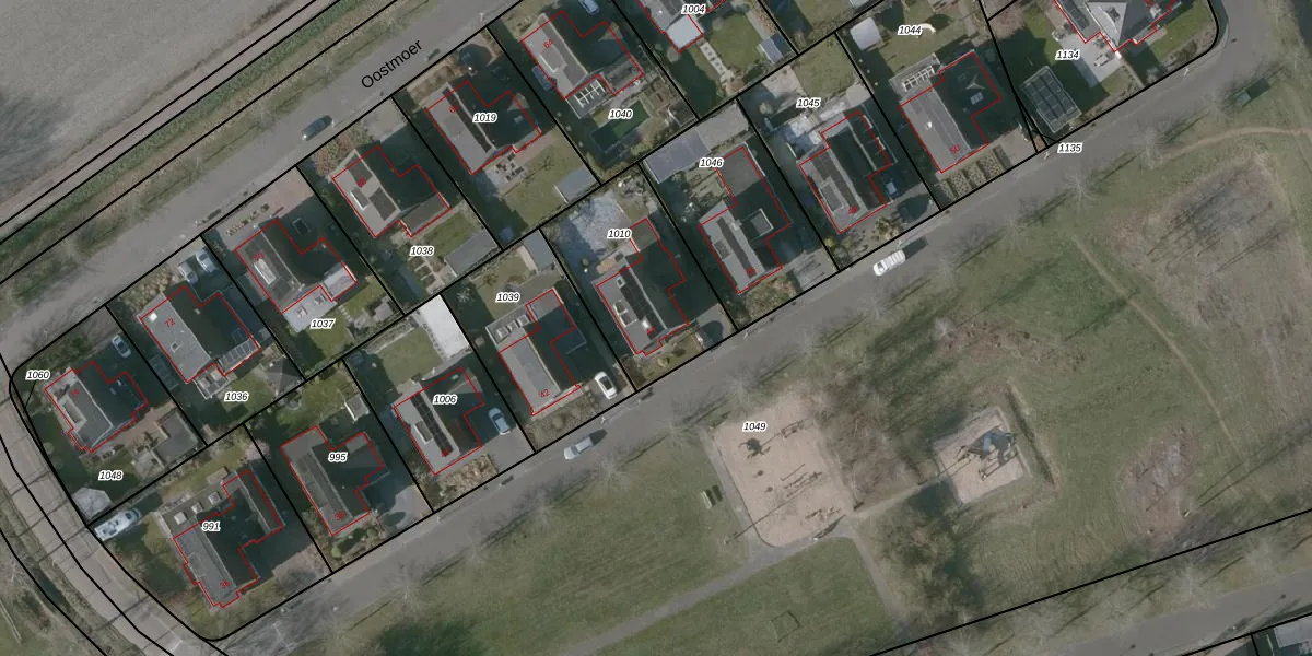 Het perceel waarop Oostmoer 44 staat heeft een oppervlakte van 533 m². Dit is een groot perceel. De perceeloppervlakte wordt geregistreerd door het Kadaster. Gedetailleerde informatie over de maten van dit perceel kunt u vinden in het rapport Kadastrale kaart met maatvoering van Oostmoer 44.