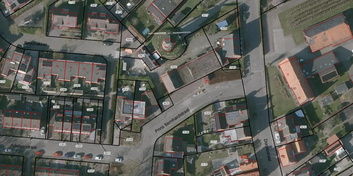 Prins Bernhardstraat 25 is gelegen op kadastraal perceel RSD00F3950. Deze kadastrale aanduiding is uniek en wordt gebruikt door het Kadaster om eigendomsrechten en andere zakelijke rechten vast te leggen. Het perceel maakt onderdeel uit van de kadastrale gemeente Roosendaal en Nispen.