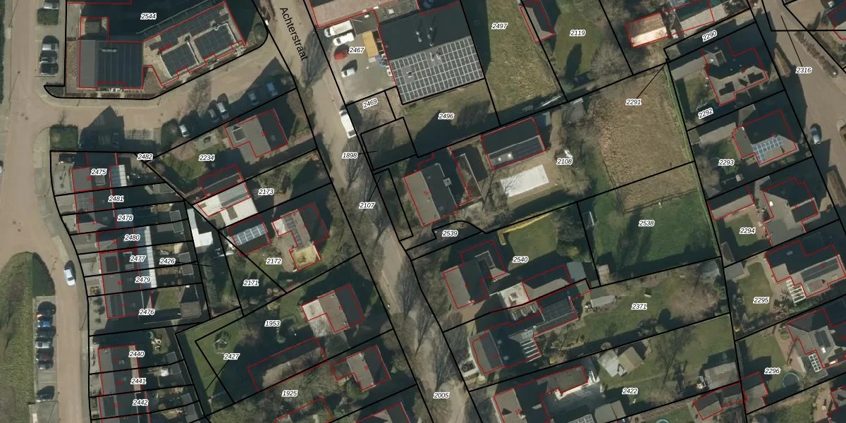 Het perceel waarop Achterstraat 7 staat heeft een oppervlakte van 1591 m². Dit is een zeer groot perceel. De perceeloppervlakte wordt geregistreerd door het Kadaster. Gedetailleerde informatie over de maten van dit perceel kunt u vinden in het rapport Kadastrale kaart met maatvoering van Achterstraat 7.