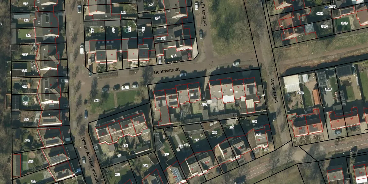 Het perceel waarop Beatrixstraat 11 staat heeft een oppervlakte van 1521 m². Dit is een zeer groot perceel. De perceeloppervlakte wordt geregistreerd door het Kadaster. Gedetailleerde informatie over de maten van dit perceel kunt u vinden in het rapport Kadastrale kaart met maatvoering van Beatrixstraat 11.