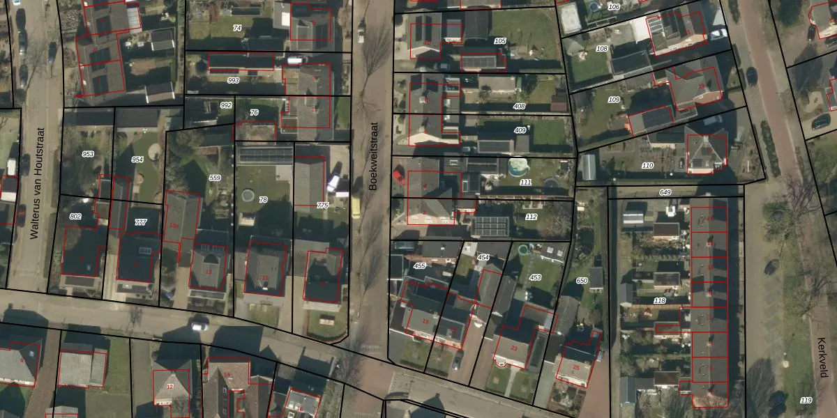 Het perceel waarop Boekweitstraat 2 staat heeft een oppervlakte van 434 m². Dit is een groot perceel. De perceeloppervlakte wordt geregistreerd door het Kadaster. Gedetailleerde informatie over de maten van dit perceel kunt u vinden in het rapport Kadastrale kaart met maatvoering van Boekweitstraat 2.