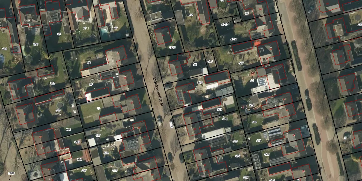 Het perceel waarop Boekweitstraat 40 staat heeft een oppervlakte van 516 m². Dit is een groot perceel. De perceeloppervlakte wordt geregistreerd door het Kadaster. Gedetailleerde informatie over de maten van dit perceel kunt u vinden in het rapport Kadastrale kaart met maatvoering van Boekweitstraat 40.