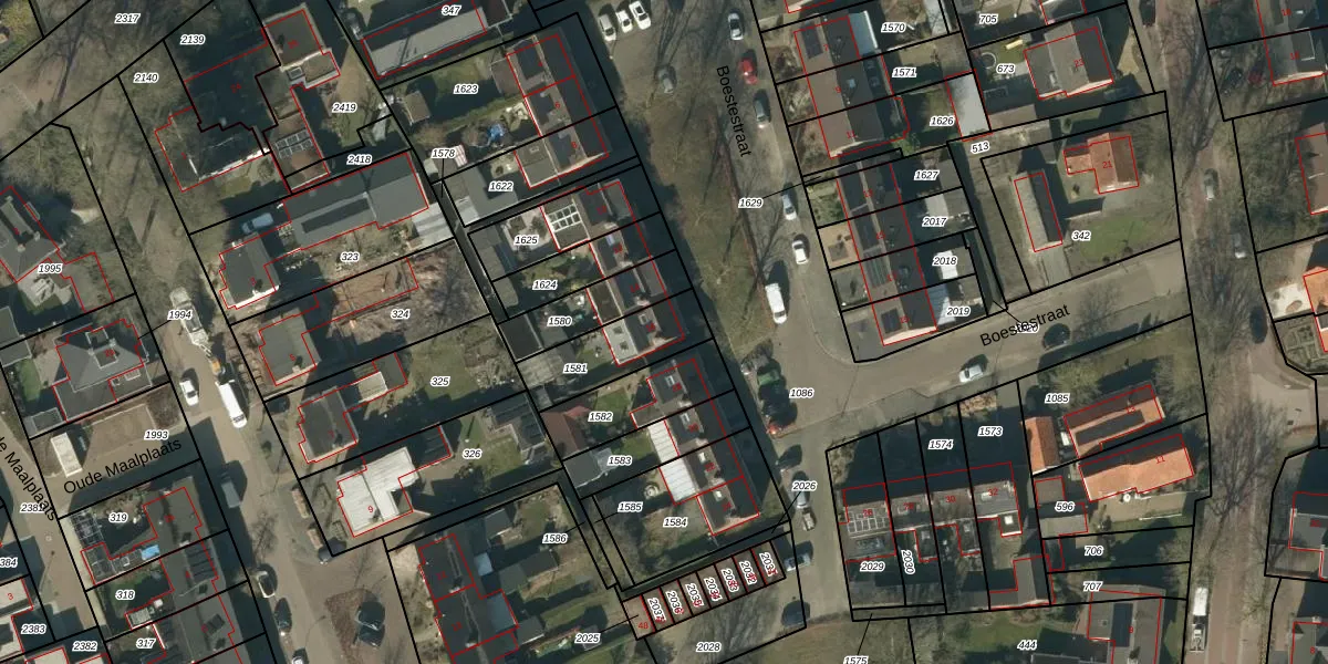 Het perceel waarop Boestestraat 16 staat heeft een oppervlakte van 238 m². Dit is een middelgroot perceel. De perceeloppervlakte wordt geregistreerd door het Kadaster. Gedetailleerde informatie over de maten van dit perceel kunt u vinden in het rapport Kadastrale kaart met maatvoering van Boestestraat 16.
