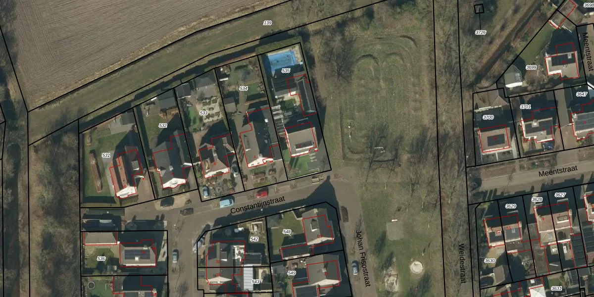 Het perceel waarop Constantijnstraat 2 staat heeft een oppervlakte van 657 m². Dit is een groot perceel. De perceeloppervlakte wordt geregistreerd door het Kadaster. Gedetailleerde informatie over de maten van dit perceel kunt u vinden in het rapport Kadastrale kaart met maatvoering van Constantijnstraat 2.