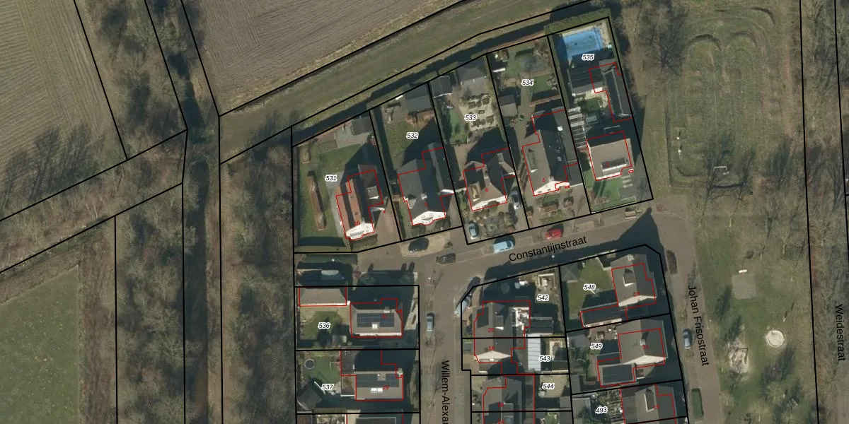 Het perceel waarop Constantijnstraat 8 staat heeft een oppervlakte van 502 m². Dit is een groot perceel. De perceeloppervlakte wordt geregistreerd door het Kadaster. Gedetailleerde informatie over de maten van dit perceel kunt u vinden in het rapport Kadastrale kaart met maatvoering van Constantijnstraat 8.