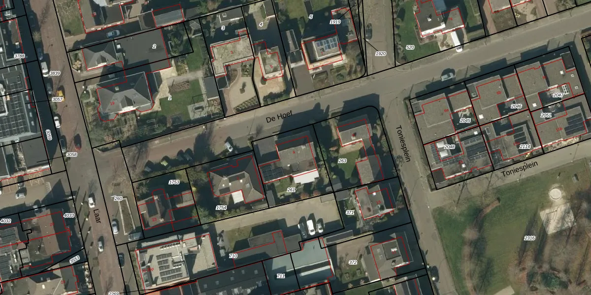 Het perceel waarop De Hoef 4 staat heeft een oppervlakte van 530 m². Dit is een groot perceel. De perceeloppervlakte wordt geregistreerd door het Kadaster. Gedetailleerde informatie over de maten van dit perceel kunt u vinden in het rapport Kadastrale kaart met maatvoering van De Hoef 4.