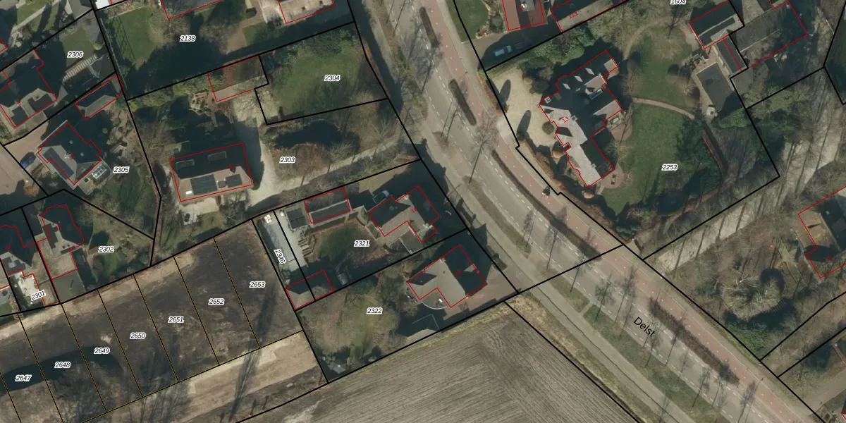 Het perceel waarop Delst 16 staat heeft een oppervlakte van 825 m². Dit is een groot perceel. De perceeloppervlakte wordt geregistreerd door het Kadaster. Gedetailleerde informatie over de maten van dit perceel kunt u vinden in het rapport Kadastrale kaart met maatvoering van Delst 16.