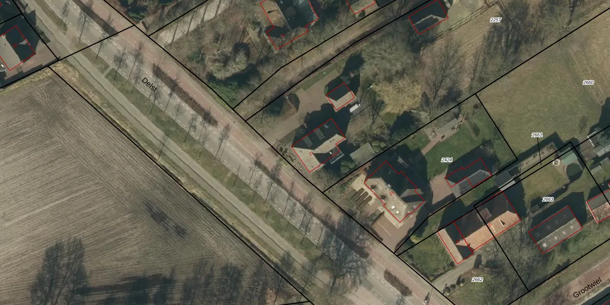 Het perceel waarop Delst 21 staat heeft een oppervlakte van 5030 m². Dit is een zeer groot perceel. De perceeloppervlakte wordt geregistreerd door het Kadaster. Gedetailleerde informatie over de maten van dit perceel kunt u vinden in het rapport Kadastrale kaart met maatvoering van Delst 21.