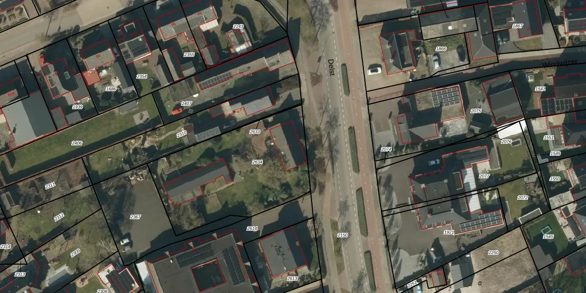Het perceel waarop Delst 6 staat heeft een oppervlakte van 1481 m². Dit is een zeer groot perceel. De perceeloppervlakte wordt geregistreerd door het Kadaster. Gedetailleerde informatie over de maten van dit perceel kunt u vinden in het rapport Kadastrale kaart met maatvoering van Delst 6.