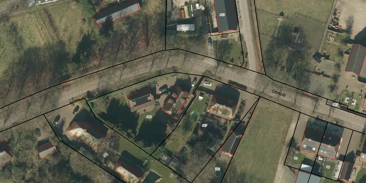Het perceel waarop Donzel 101 staat heeft een oppervlakte van 1540 m². Dit is een zeer groot perceel. De perceeloppervlakte wordt geregistreerd door het Kadaster. Gedetailleerde informatie over de maten van dit perceel kunt u vinden in het rapport Kadastrale kaart met maatvoering van Donzel 101.
