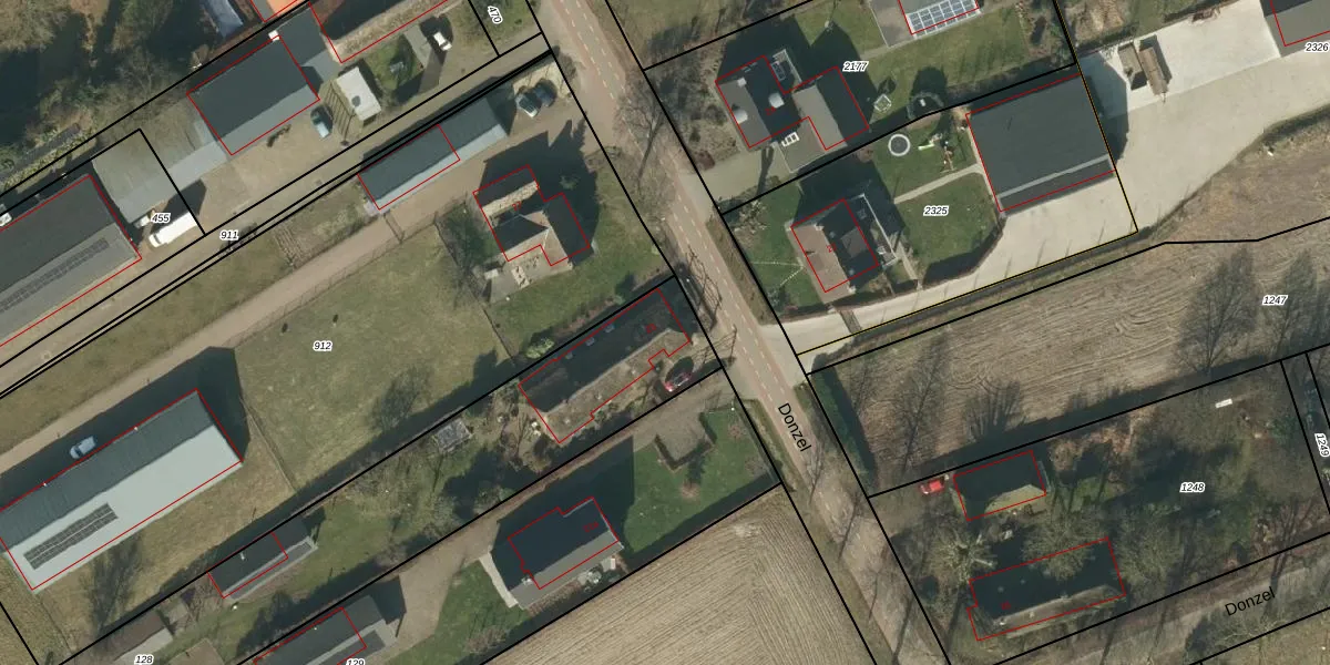 Het perceel waarop Donzel 23 staat heeft een oppervlakte van 2450 m². Dit is een zeer groot perceel. De perceeloppervlakte wordt geregistreerd door het Kadaster. Gedetailleerde informatie over de maten van dit perceel kunt u vinden in het rapport Kadastrale kaart met maatvoering van Donzel 23.