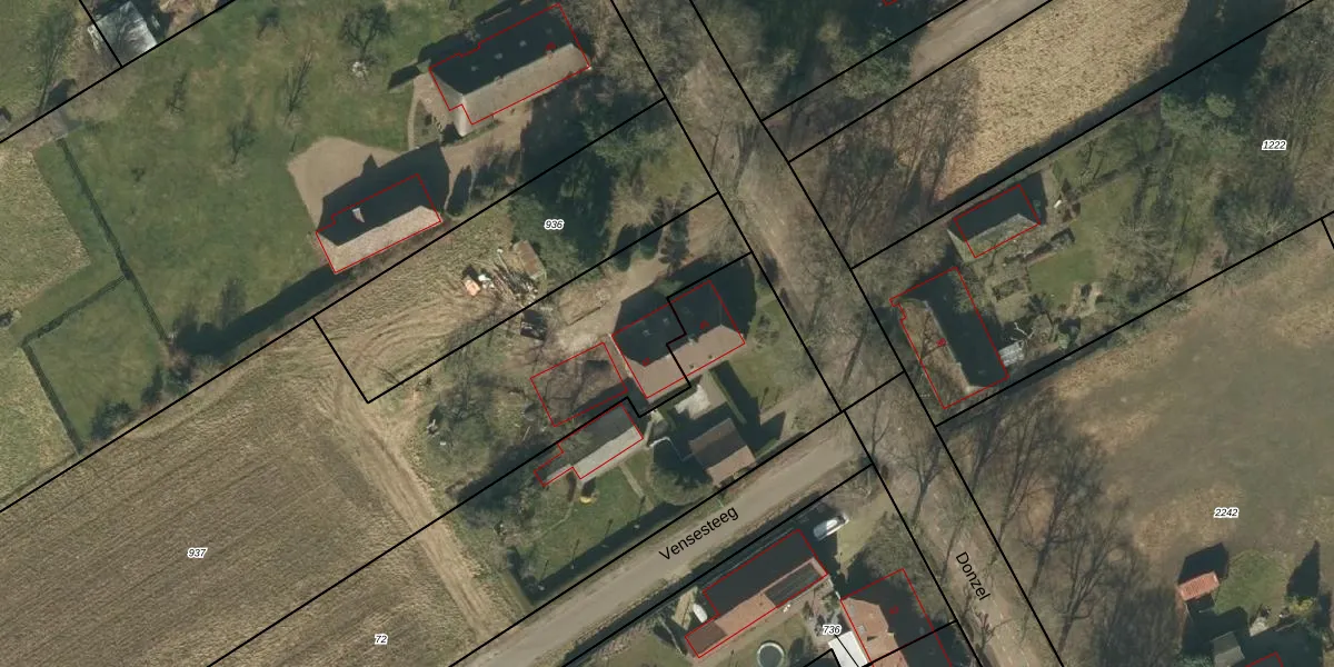 Het perceel waarop Donzel 47 staat heeft een oppervlakte van 1,2 ha. Dit is een zeer groot perceel. De perceeloppervlakte wordt geregistreerd door het Kadaster. Gedetailleerde informatie over de maten van dit perceel kunt u vinden in het rapport Kadastrale kaart met maatvoering van Donzel 47.