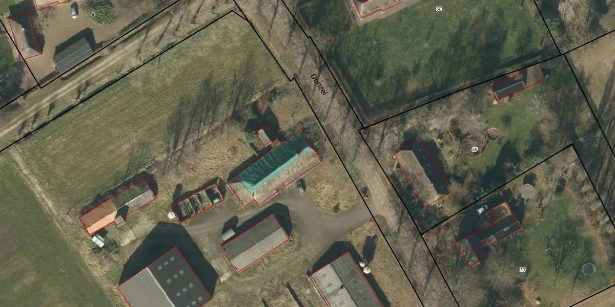 Het perceel waarop Donzel 59 staat heeft een oppervlakte van 10,1 ha. Dit is een zeer groot perceel. De perceeloppervlakte wordt geregistreerd door het Kadaster. Gedetailleerde informatie over de maten van dit perceel kunt u vinden in het rapport Kadastrale kaart met maatvoering van Donzel 59.