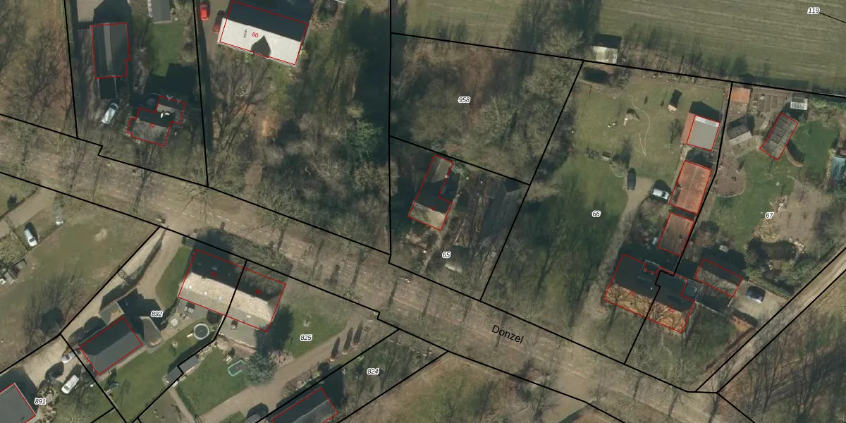 Het perceel waarop Donzel 74 staat heeft een oppervlakte van 840 m². Dit is een groot perceel. De perceeloppervlakte wordt geregistreerd door het Kadaster. Gedetailleerde informatie over de maten van dit perceel kunt u vinden in het rapport Kadastrale kaart met maatvoering van Donzel 74.